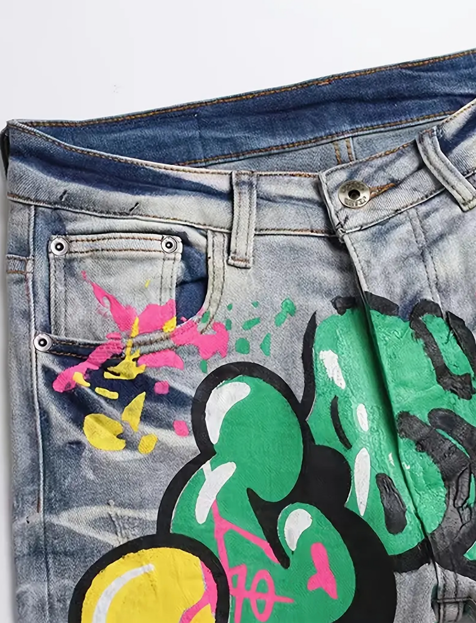 Men's Trendy Doodles Pattern Ripped Jeans Distressed Punk